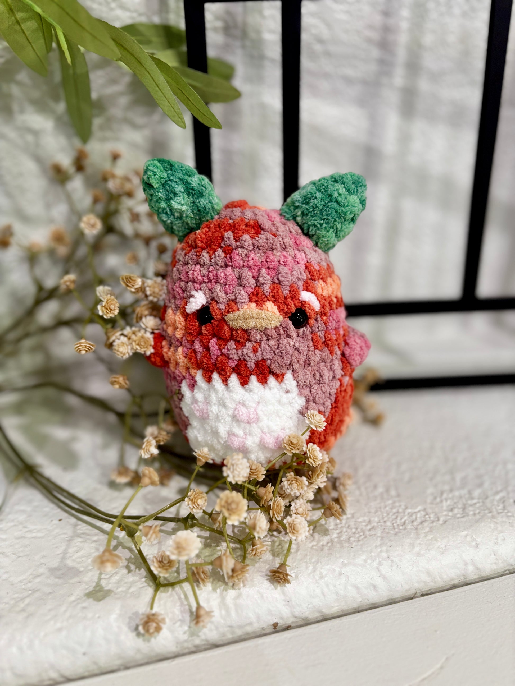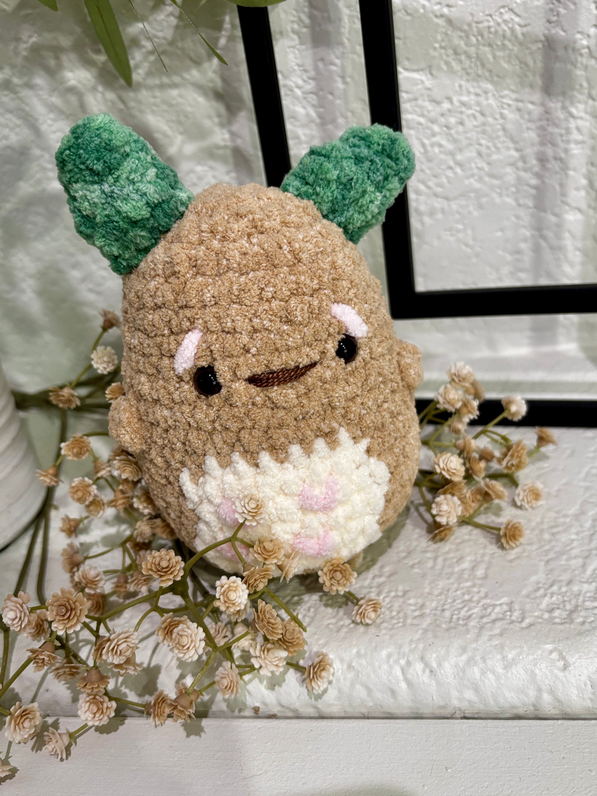Our Forest Sprout Plushie is a soft, squishy little friend with leafy ears and the sweetest smile. Handmade with plush chenille yarn, each one is perfectly round, cuddly, and ready to brighten up your shelf, desk, or gift basket.